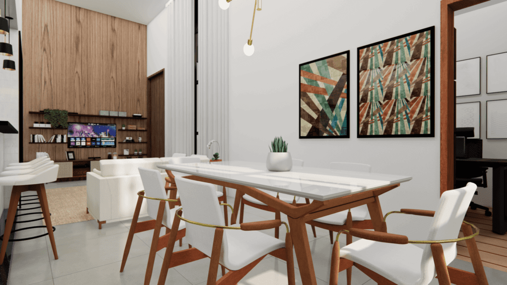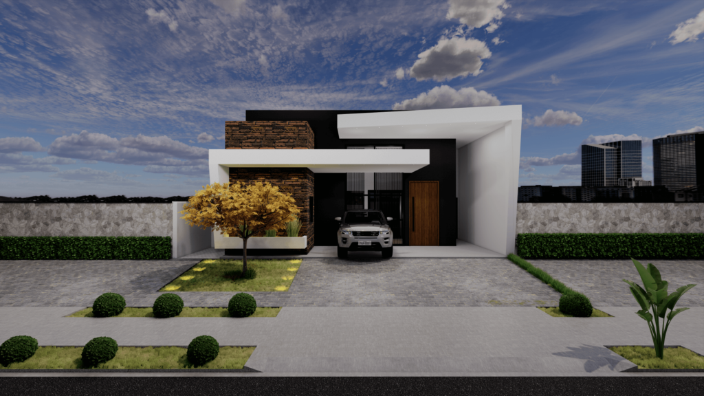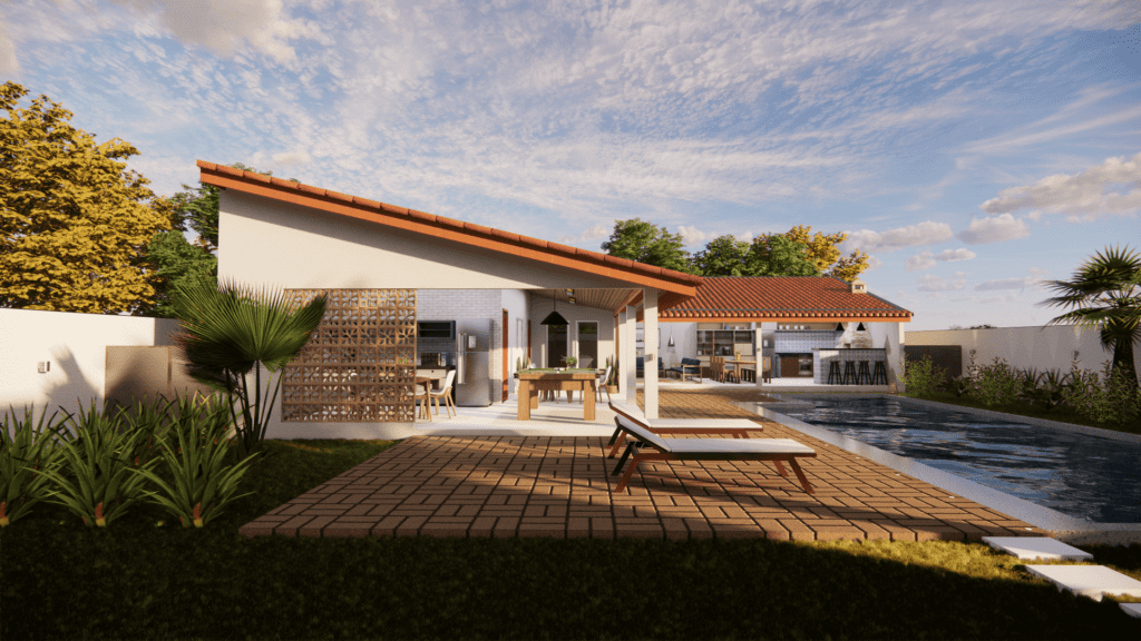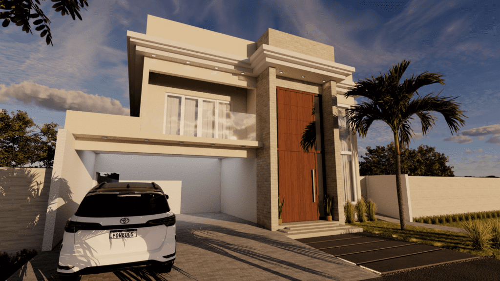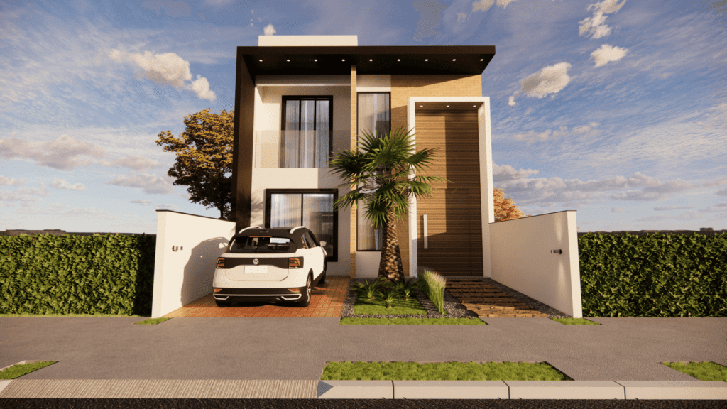 Este projeto foi pensado para um casal jovem que gostaria de focar em áreas sociais e de lazer para receber amigos e família, mas também ter uma casa ampla para acomodar os futuros filhos. Para isso, foi projetado um imóvel de 215 m² com estilo contemporâneo, unindo beleza e funcionalidade nos espaços.
