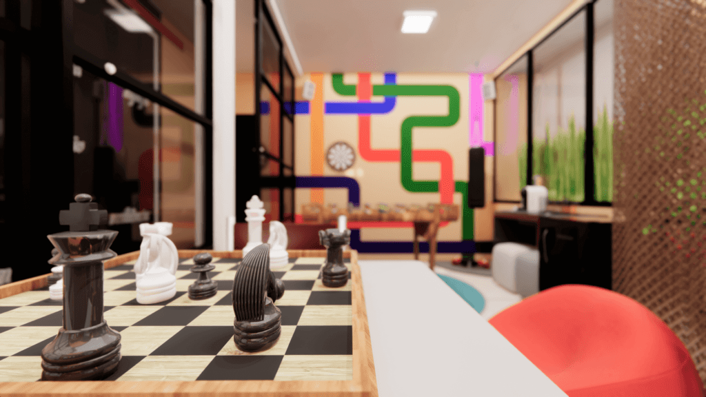 Projeto de interiores para salas de descanso, descompressão, trabalho e recepção, em que o objetivo foi transmitir a essência da empresa e proporcionar bem-estar aos colaboradores.